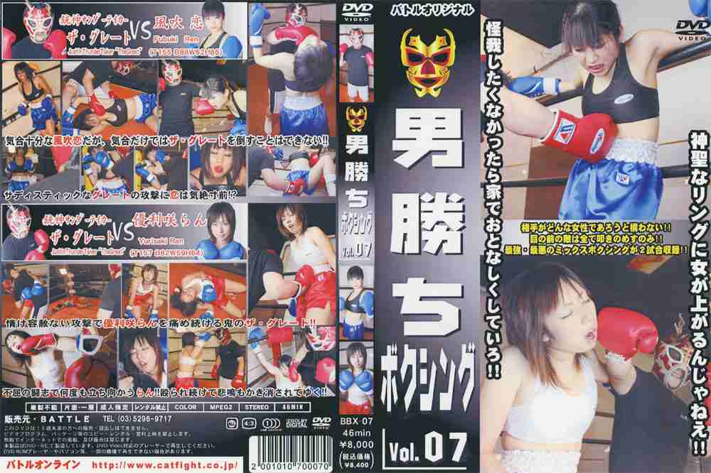 男勝ちボクシング待望の第7弾は気合十分の風吹恋と不屈の闘志がみなぎる優利咲らんの超美形コンビ!!そんな、美形コンビに容赦なく顔、腹、そして、股間にまでパンチを叩き込む鬼のザ・グレート!!二人はどう、立ち向かうのか!? バトル