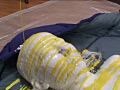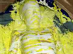モデルさんには全裸になって貰い、寝袋を使い絵の具で全身ドロドロ状態で、ロープで拘束され、しかもこの状態のまま、「電マ」で、いじめられてしまいます。最後には顔に大量の絵の具をかけられ、口の中も絵の具まみれに!! ※本編顔出し