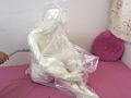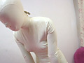 鼻の部分に、小さな呼吸穴が2つしか無い、全身ラバーを着た女性に、自分では外す事が出来ない、カギ付きのラバーマスクを着用させ、海外製のエロマッサージ機で、イキまくり。そのままの姿で今度は、布団圧縮袋に閉じ込め、限界までチャレンジ。さすがに、危険すぎるので、失神するまでは閉じ込めておりません。