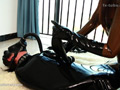 ラバードール・キキは今日も虐められます。彼女は女王・ダブにエナメル製の寝袋に閉じ込められ、身動きができません。そんな彼女にダブは無情にもガスマスクを装着し、視界と呼吸を制限します。それだけでは終わりません。ガスマスクの先には呼吸バッグが。自分の吐いた二酸化炭素しか体内に取り込めなくなったキキは、だんだん意識が遠のいてゆくのです。