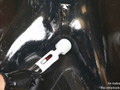 ラバーマゾ・キキと引き続き遊んでます。前作 FSS-W014 では全身をボックスに閉じ込めましたが、苦しんでいる顔をもっと見たいと思ったので肩から下だけ閉じ込めることに。一見自由が利きそうな感じですが、ところがどっこい空気を抜いていくと全く動けなくなります。彼女の不安そうな顔をバッチリ拝めます。そんな彼女をやっぱり電マでグイグイ。ボックスの中で蠢くラバーの肉塊。さんざん苦しそうな顔は楽しめたので、最後はビニール袋を頭から被せて極限まで放置してやりました。
