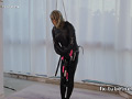 エナメルキャットスーツで潜入捜査をしていたFBX捜査官のキキですが、捜査対象である精神科医・ネクター博士に捕まってしまいました。ネクター博士はかつて自分が拘留されていた時に付けられていた装具でキキを固定し、天井から吊るします。両腕を縛られ、身動きができないキキ。博士は彼女の身体にローターや電マを取り付けていき、辱めを味わわせます。そして博士はラバーフードを被せて、キキの呼吸までも断ってしまいます。