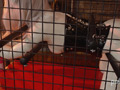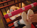 FSS新章突入です。出演に関してやりとりをして、顔出しもOKで非常にやる気のあったモデルさんだったのですが、マスターは無常にもその顔をラテックス製のドールフェイスで隠してしまいます。それどころか珍しい白色のエナメル全身タイツを着させ、さらにその上からコルセットまで。鞭を持ったモデルさんは、勘違いしたのか女王様チックなポーズを。そんな調子の乗った彼女を、マスターはケージに閉じ込めてしまいました。中にはバーが3本渡され、身動きができません。その彼女に電マ責めを加えるマスター。今度は仰向けに固定させて、エナメルタイツで感度の良くなった足裏にくすぐり攻撃です。マスクの向こうで息も絶え絶えな彼女は、改めて電マで責められ昇天したのでした。
