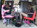 今回の足置き台シリーズは珍しく二人組に踏んでもらいました。○○生からの友達でこの日はショッピングの後に来てくれました。セクシーな黒パンストの子はクラブホステスで163cm・足22.5cm。タイツの子はスイミングスクールインストラクターで165cm・24cm。まず前半は履き古したブーツやパンプスのインタビューをして、それから二人の足置き台になりますが完全にリラックスモードでタバコを吸ったり携帯で話したりと踏みながら自由に寛いでます。二人一緒に踏まれるのはかなり気持ち良いし顔を踏まれながらもう一人のパンスト足を触れるのは最高に興奮しましたね。天気が良い中かなり歩いたので二人の足は良い匂いがしました。 ※本編顔出し