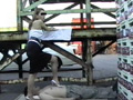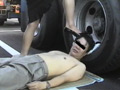トラック置き場で黒と銀のセクシーハイヒールで身体や顔を踏まれたり口の中にヒールを入れられたりと痛いけど気持ちイイですね。果物や野菜もグチャグチャに踏み潰してます。 ※本編顔出し
