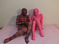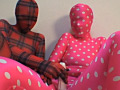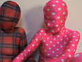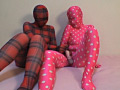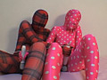 全身タイツレズ娘たちの秘密の花園を蹂躙する!ゼンタイレズ娘W電マ責め&ゼンタイフェチセックス!赤と黒のチェックのゼンタイ娘とピンクに白の水玉のゼンタイ娘が互いを刺激し合い、二人で一緒に黒ゼンタイ男と3Pを繰り広げます! nano Mania