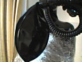 女の子に黒のラバースーツを着てもらい、椅子に座らせ、口のところだけ開いたラバーマスクをかぶせます。そしてラップで身動きが取れないようにぐるぐる巻きにし、バイブをアソコに挿入!そのあとは蛇腹を咥えさせバルーンを膨らませます!! RUBBER RUBBER