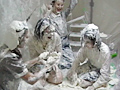 今回はOLのお姉さんたちであります。本物のOLさんもいれば、自営業のお姉さんもいますが、とにかく4人のパイ投げ大会。実に自由にやっております。自分たちでシェイクした生クリームを一瞬で消費。最終的には4人とも全身生クリームまみれで真っ白に。「誰が誰だかわかんなぁーい」と誰かが叫んだ!