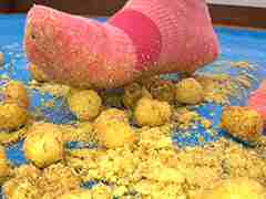 【本日のアイテム】パフスナック。焦らすように、まさぐるように、ピンクのスニーカーソックスがパフスナック菓子の上を滑る…。俺の欲望を見透かすかのように、ゆっくりと、つま先で、かかとで、丸いスナック菓子を転がした後に、念入りに潰し、潰した後も、踏みつけて、すり潰して、粉々にしていく。だんだんと、慣れて来たのか、思い切りよく一気に踏みつけ、その後、淡々とすり潰していく…。トランス状態のように、目が離せない。まさに、フェチという深みにハマった俺の感情と、欲望に飲み込まれていく!彼女は、分かっているんだ。 […]