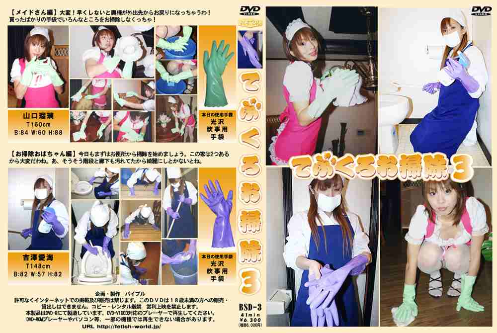 手袋の定番・炊事用ゴム手袋などを使って、ちょっエッチな女の子が掃除するシーンを収録。今回は、お掃除おばちゃん編とボディコンギャル編をご覧いただきます。 バイブル