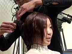 笑顔が素敵な前髪長めで、サラサラのヘアーのお姉さん。すっごく髪が細いです。きめ細かいロングヘアーをバッサリ切っちゃいます!!
