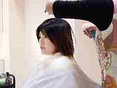 美人のロングヘアーが、みるみるうちにベリーショートに!バッサリと髪を切られていく様は究極の髪フェチ・断髪フェチにはたまらない映像です。